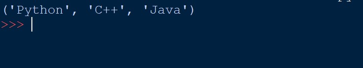 1 2 3 4 | dersler = ("Python", "C++", "Java") print(dersler) |